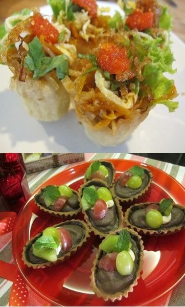 an easy pie made it very suitable for pampering family early in the week. crispy crunchy batter bowl became his trademark. stuffing vegetables stir fry, as well as a soft brown with a topping of fresh fruit, the more crispy savory. yuk, intip recipe here, as summarized from detikfood.kueh pie tee 1.ingredients:bowl:1 egg chicken80 g flour2 tbsp rice flour1 tbsp cornstarch1/2 tsp salt200-250 ml of water1 litre of cooking oilstuffing:1 tbsp vegetable oil4 cloves garlic, minced1 tsp of douchi100 g prawns, chopped400 g radishes, sliced into small lengths of water, soak for 10 minutes, drain100 g carrot, peeled, small drawstring long200 g boiled bamboo shoots, drained, sliced into small lengths1 piece of fried tofu, sliced, dried small fry2 tbsp broth1 tsp soy sauce1 teaspoon sweet soy sauce1/2 tsp pepper powdercomplement:4 pieces of lettuce2 stems of cilantro, chopped1 egg chicken, make omelet, finely sliced2 tablespoons fried shallots4 tbsp chilli saucehow to make:bowl:beat the eggs in a bowl until bubbly.stir the flour and salt into one. make a hole in the center.pour the beaten egg while until well blended.tuangi water while stirring-stirring until the dough is pretty slick and dilute it.let stand for 1 hour.heat the oil in a saucepan over medium heat.dip mold in hot oil pie tee.dip into batter, lift and insert it into the hot oil.allow it to escape and golden yellow.remove and let cool.working on the greeting with the remaining ingredients.stuffing:saute garlic until fragrant.enter douchi, mix well.stir in the shrimp, mix well until it changes color.add the vegetables, stirring until vegetables are wilted.add seasonings, stir until blended.remove and let cool.presentation:the contents of the bowl pie tee with batter content.give the complement it.serve immediately.cereal for 36 servings.2. chocolate ganache pieingredients:12 ready-made pie bowls100 g dark cooking chocolate, meltganache:300 g dark cooking choocolate, cut small350 ml fresh creamwhipped cream:250 ml fresh cream1 tbsp caster sugargarnish:fresh fruitsshaved chocolatehow to make:melt the chocolate in a way ditim.lightly grease the inside of the bowl pie with melted chocolate.let stand until chocolate hardens.ganache:heat the fresh cream to almost boiling.pour into a small cut chocolate and stir-stir until chocolate is dissolved.let stand until chocolate rather lumpy.pour into the bowl-bowl pie, roll out and let stand until cool.spray the top with whipped cream.garnish with fresh fruit and shaved chocolate.serve.serving for 12 servings. (odi/rma) )